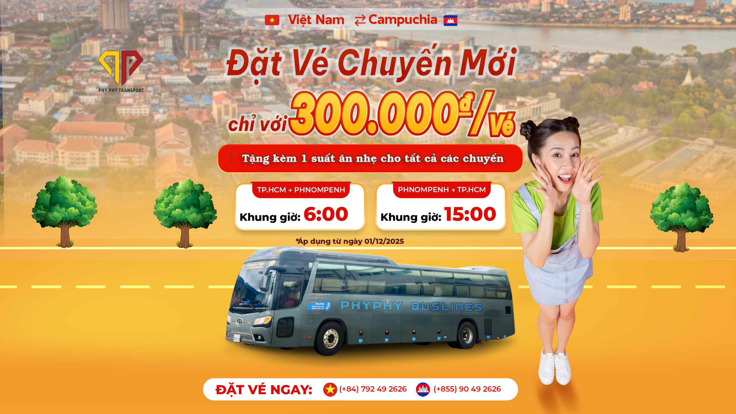 ✨ TP.HCM → Phnom Penh: 08:00 | 12:30 | 15:00